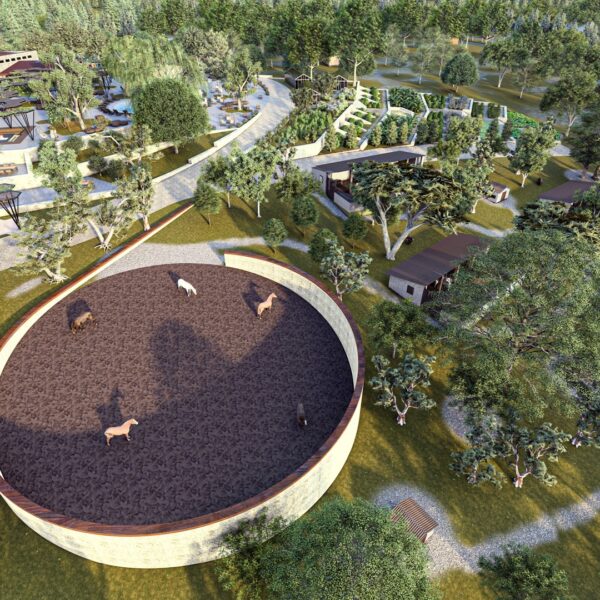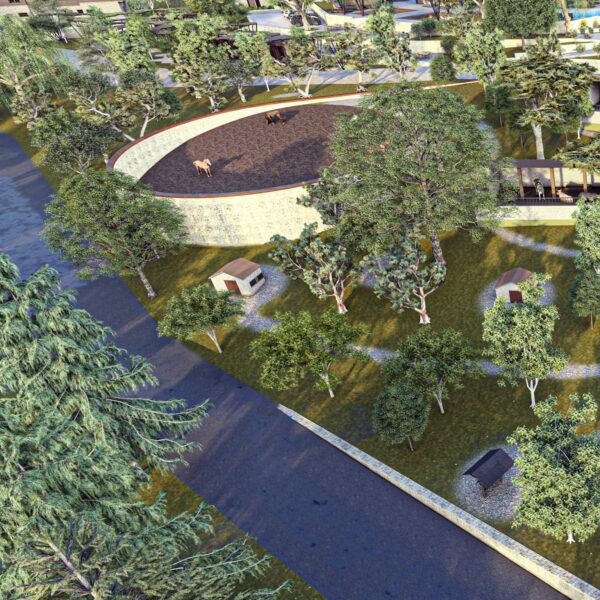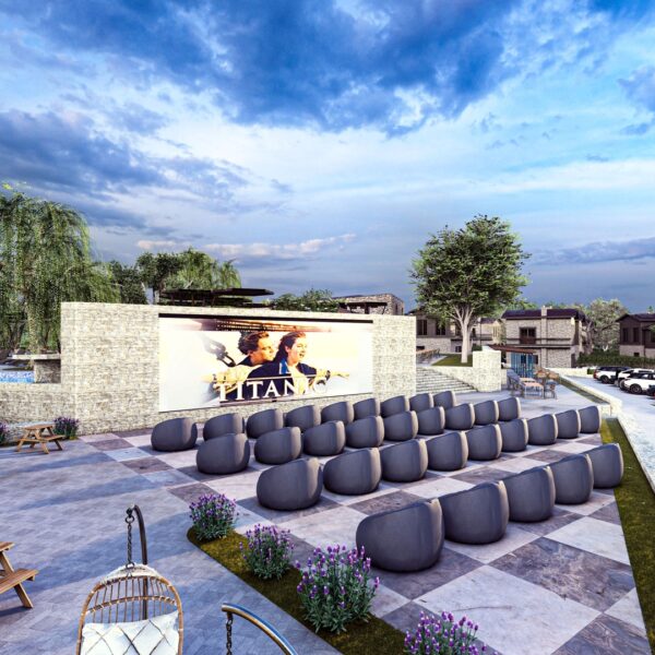yüzme havuzu, çocuk oyun alanları, binicilik klübü, cafe-restoran ve mini tarım bahçelerinden